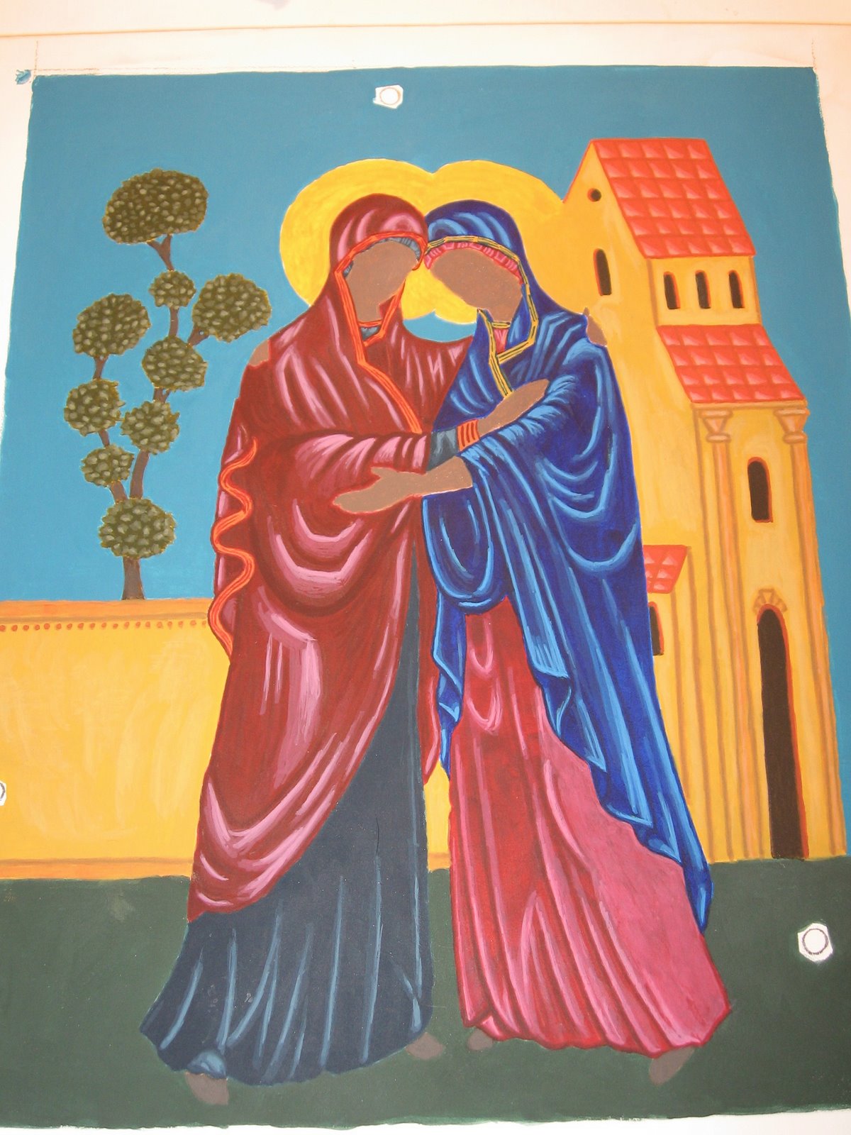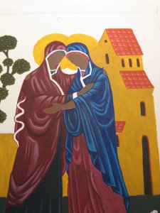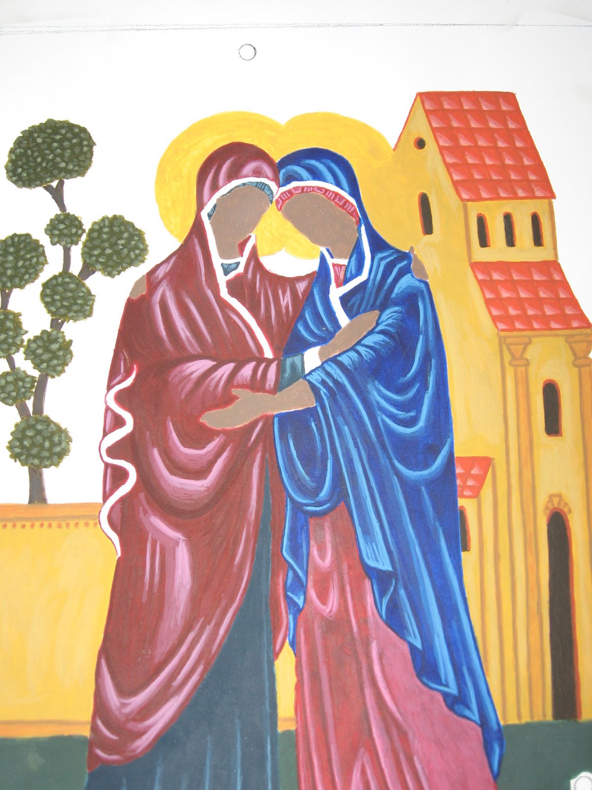 It is something to think about – the young Mary needing the help of another. Very often in our imagery Mary is the mother alone with her divine son or the mother giving aid to us wandering pilgrims. But here Mary is the one receiving comfort and encouragement from another. It is very touching and tender. It is very human. The moment is graced.