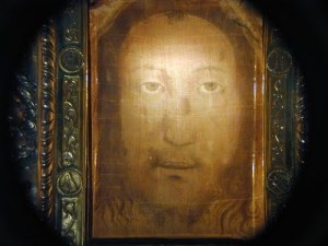 I just finished reading, “The Face of God: The Rediscovery of the True Face of Jesus” by Paul Badde. In the book Badde carefully lays out the argument that the relic of the Holy Face of Manoppello (a small city in Italy) is in fact the veil laid over the burial shroud of Jesus in the tomb. The image on the veil (seen above) matches that found on the Shroud of Turin and likewise is inexplicable in its making. This veil is what came to be known over time as the Veil of Veronica. It is all quite intriguing.